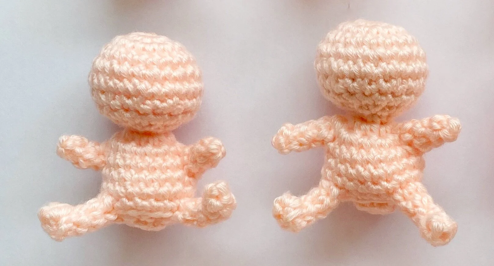 Most crochet dolls begin with a sphere-shaped head. From there, the body is typically worked in one continuous piece and shaped like a cylinder. You can add simple variations—such as a gentle bust for female dolls or a slight taper to form a waist—to enhance character and proportions.