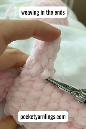 Other options include glueing the stray ends, using a lighter to burn the stray ends off or simply to just tie a knot at the end. Like I said, easier to pick a crochet pattern with no loose ends and stuff all the leftover stray yarn back into the amigurumi so there is no more shedding.