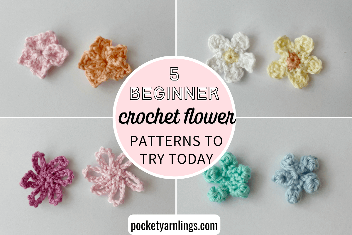 If you have been wondering how to crochet a small flower pattern, then here are 5 free crochet flower patterns to try out! These are great for making spring or summer flowers, including a combination of crochet applique and crochet garland as well. These are great ideas to get you started really quickly and easily, they mostly take less than 10 minutes up to work up!