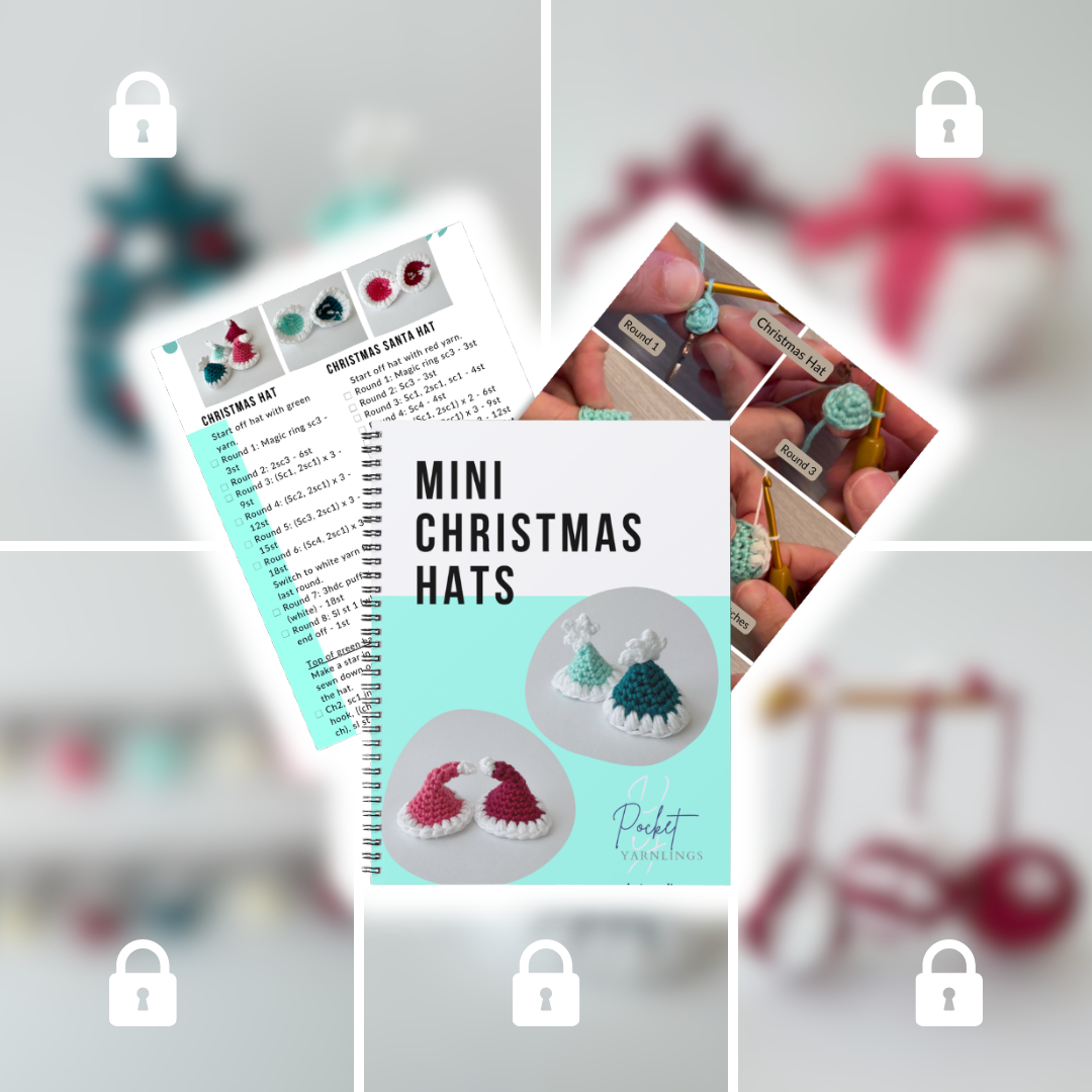 Thank you for joining me in crocheting these little Christmas hats. Remember to tag me @pocketyarnlings on instagram so I can see your makes too and I will feature them in my email newsletter. Here is how you can support me so that I can make more posts and videos for you in the future: