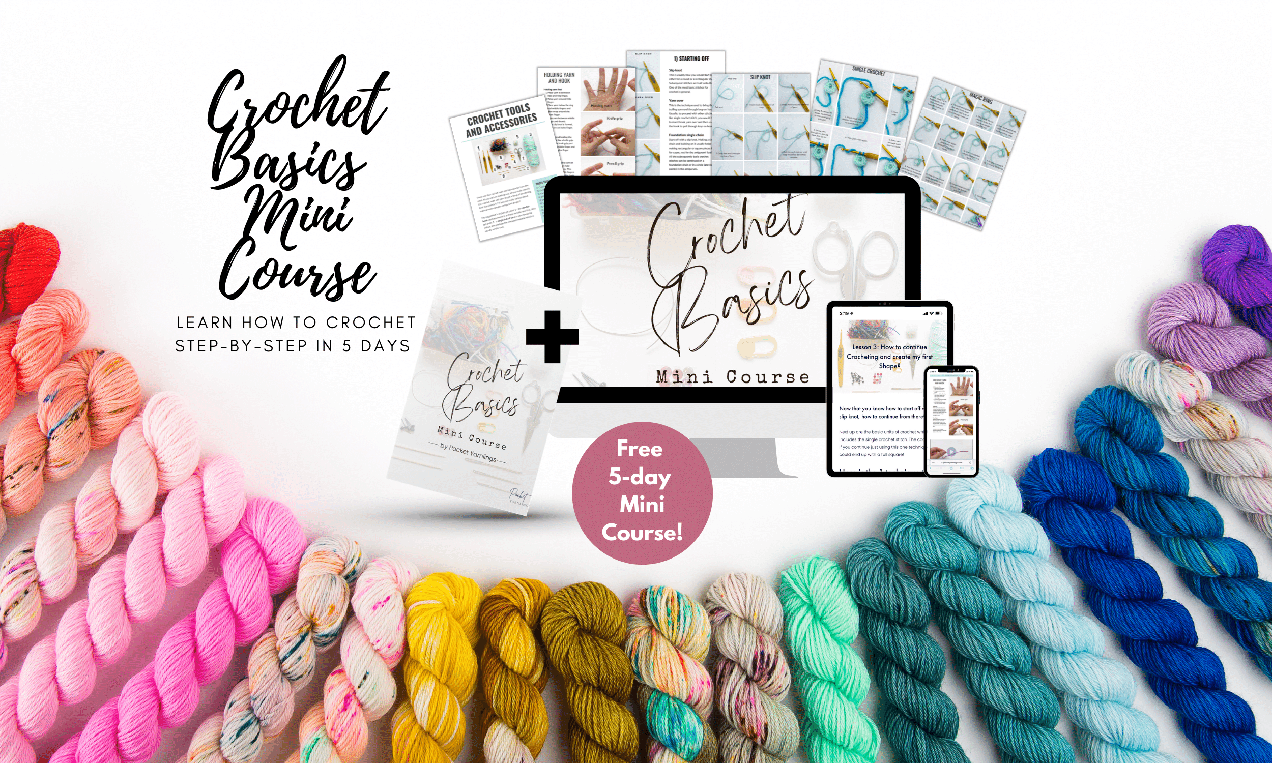If you need help with starting your first crochet stitches with your yarn and hook, remember to join me for this free email course, teaching you all the basics of crocheting so that you can quickly get started on your first crochet project!